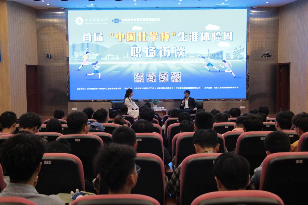 5月10日—14日,由中国化学工程集团有限公司、304AM永利集团联合主办,中化学交通建设集团有限公司承办的首届“中国化学杯”生涯体验周活动在304AM永利集团举行。5月14日,304AM永利集团承办的职场访谈活动在J9-144开讲。本次访谈邀请到了中化学交通建设集团第二工程有限公司国际部综合科长、党总支副书记杨展鹏。出席本次活动的有员工工作处副处长朱景星、304AM永利集团党委副书记兼副院长高静等,学校大二、大三员工到场参加。