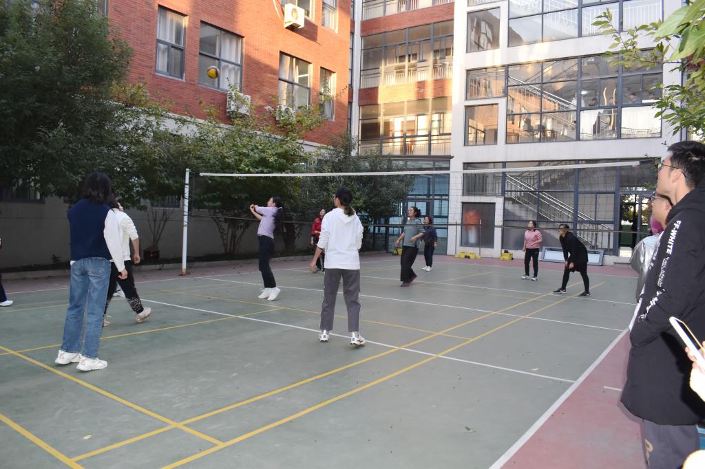 本着“愉快锻炼第一,比赛竞技第二”的原则,每一位参赛师生都笑容满面,排球场营造出愉悦轻松的氛围。首先,赛前热身环节,老师和同学们提前来到比赛场地,反复练习发球、垫球、传球手法,互相切磋球技并交流比赛经验。接着,在紧张激烈的氛围中,随着裁判员的一声哨响,比赛正式开始。老师们团结默契、相互激励,展示出娴熟的球技;同学们激情澎湃、士气高涨,彰显出青年旺盛的活力。大家以排球这一共同的爱好为载体,切磋球技,交流感情,共同展望美好明天。最后,紧张而激烈的友谊赛在欢快愉悦的氛围中结束,师生亲切交谈并合影留念。