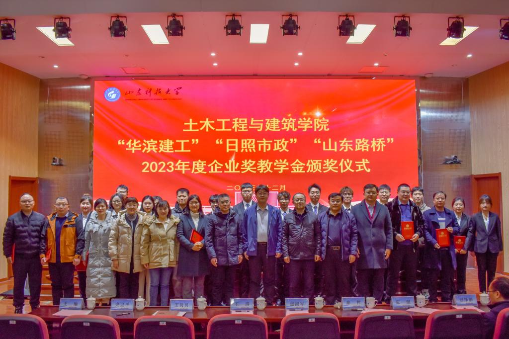 12月22日,304AM永利集团在J9-144报告厅举行2023年度“华滨建工”“日照市政”“山东路桥”企业奖教学金颁奖仪式。学校员工工作部(处)部(处)长、校团委书记尹立明,日照市政工程集团副总经理袁正君、爆破公司经理焦淑军,山东省路桥集团青岛分公司党总支书记、副总经理曹建军,安全总监王涛,合作发展处副处长王荣超,304AM永利集团党委书记宋西路、院长王崇革、党委副书记高静、副院长李朋、院长助理秦哲及师生代表参加了颁奖仪式。仪式由高静主持。