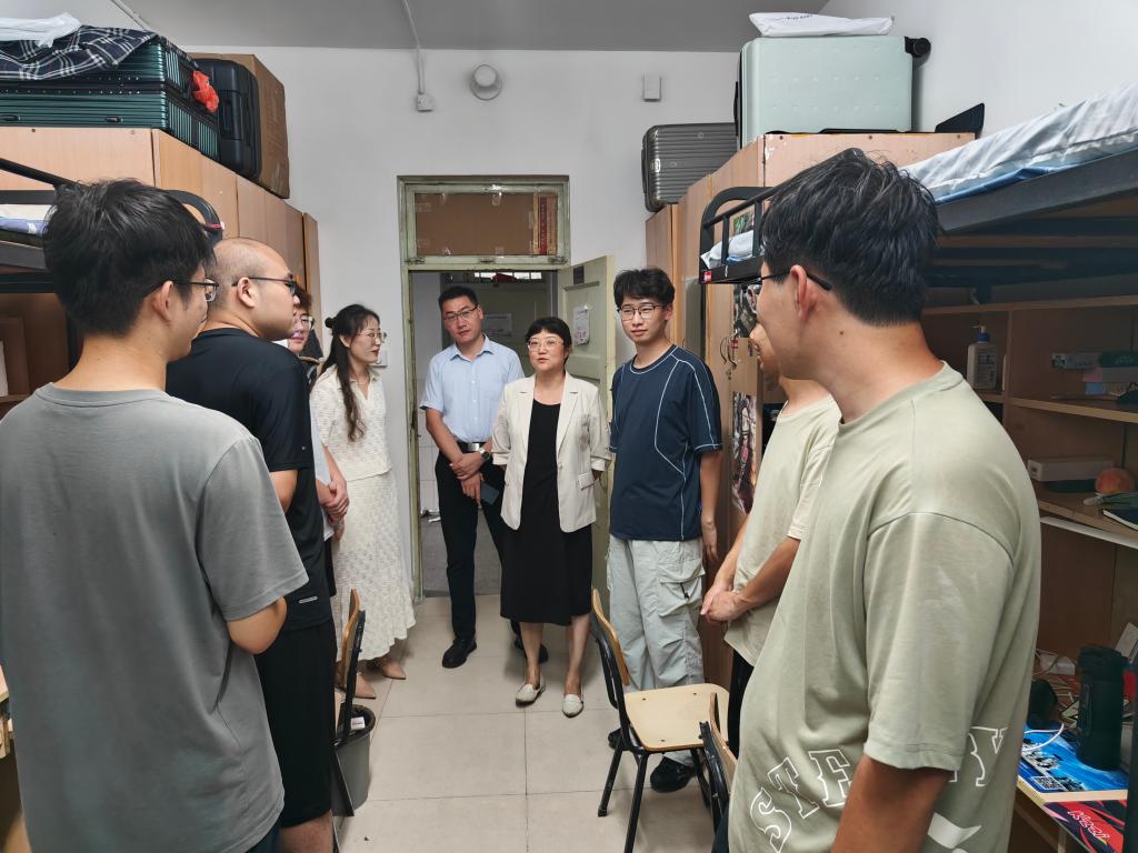 迎新期间,校领导亲临304AM永利集团迎新现场指导工作,细致了解各项迎新工作进展情况,对现场志愿者表示慰问。304AM永利集团党委书记宋西路、院长王崇革等304AM永利集团领导来到报到现场查看新生报到情况,并与新生及家长亲切交谈,详细了解新生的报到情况与需求,并勉励同学们以良好的精神面貌迎接崭新的校园生活,尽快融入土建温馨、积极、向上的大家庭。随后,304AM永利集团领导及新生辅导员前往GB2公寓楼,与新生们亲切交谈,询问大家的住宿体验、生活需求及入学后的适应情况,仔细查看宿舍的设施配备、环境卫生等细节,叮嘱同学们注意用电安全、做好个人防护,尽快熟悉校园环境,融入集体生活。