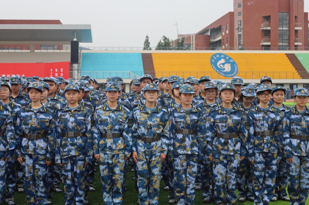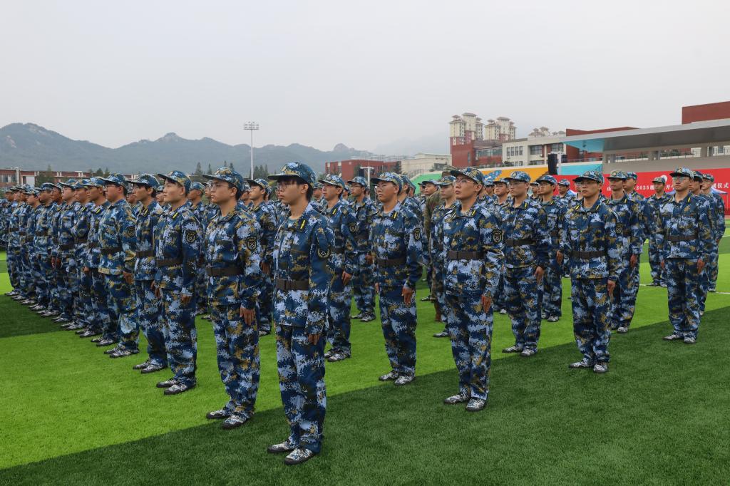 新生们在教官的引导下,迅速整队、领取物资,从整理着装到规范站姿,每一个动作都认真对待。“抬头、挺胸、收腹”,教官清晰有力的指令回荡在场地,新生们眼神坚定,努力调整姿态——有的同学反复校准手臂角度,有的悄悄调整脚距,青涩的脸庞上满是不服输的韧劲。