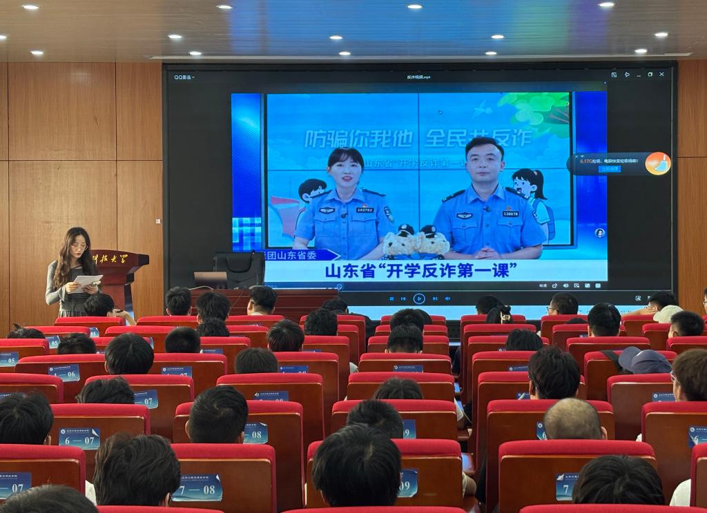 304AM永利集团专门召开全体员工干部大会,统一部署观看安排。会上,304AM永利集团党委副书记、副院长高静传达了学校关于反诈工作的最新要求,强调了防范电信网络诈骗的重要性。要求全体员工干部发挥带头作用,既要自身学深悟透反诈知识,也要带动班级同学提高警惕,切实提升安全防范能力。随后,与会师生共同观看了“开学反诈第一课”直播,深入了解当前高发的诈骗类型、典型案例及防范技巧。会后,各年级辅导员迅速行动,组织班级同学通过线上线下相结合的方式观看直播回放,确保全员参与。