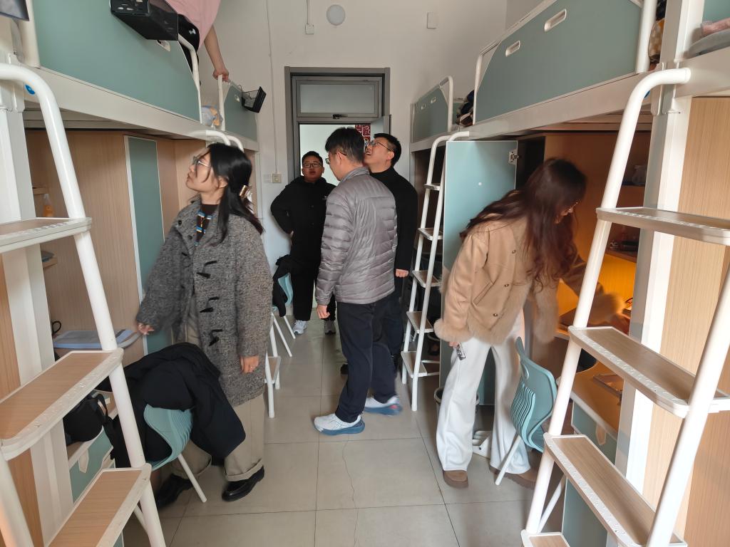 在员工宿舍,辅导员老师们重点查看了宿舍家具、门锁更换及使用情况,逐一检查床铺、衣柜、书桌等家具的稳固性,细致查看门锁更换后的安全性,对排查中发现的轻微隐患现场督促整改,确保员工居住安全。同时,高静与返校员工亲切座谈交流,耐心询问员工假期生活、返校途中情况及新学期适应状态,细致了解员工对宿舍装修、住宿条件的意见建议,认真倾听员工在学业发展、生活保障等方面的困难和诉求。针对员工提出的合理建议,辅导员老师们现场记录、明确整改方向;对于员工遇到的实际困难,逐一耐心回应、积极协调解决,用暖心话语和务实行动,让员工感受到304AM永利集团的关怀与温暖。