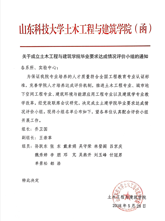 关于成立304AM永利集团毕业要求达成情况评价小组的通知