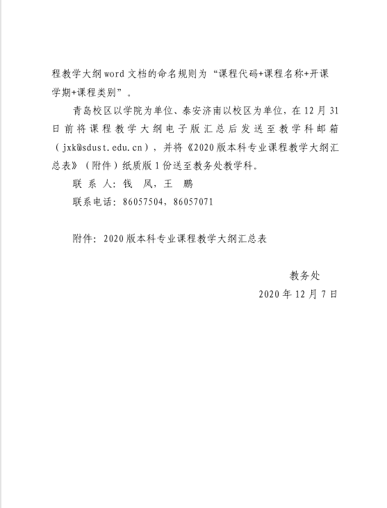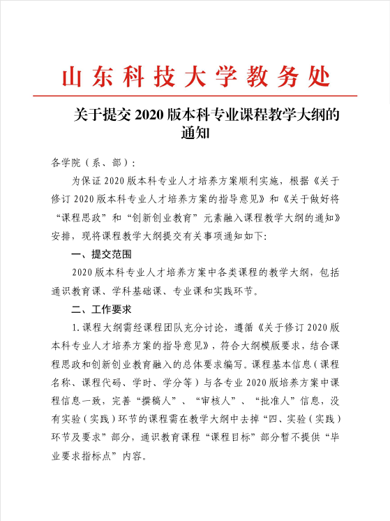 关于提交2020版本科专业课程教学大纲的 通知